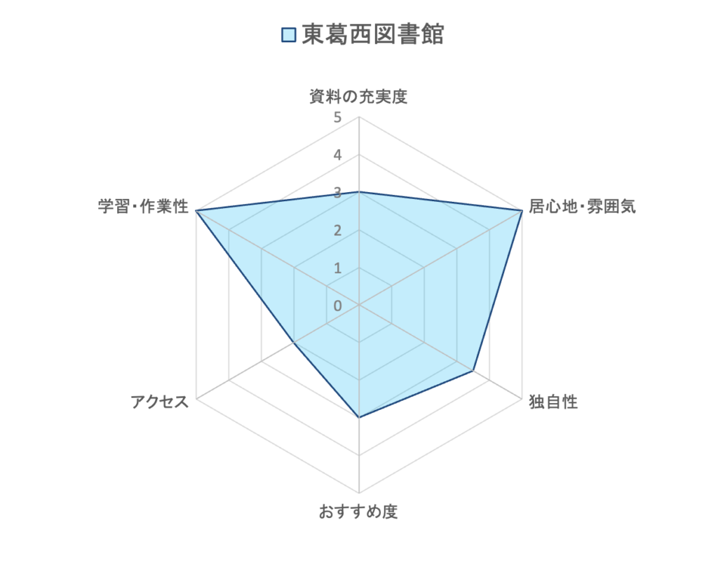 【おすすめ度】駅から遠く地元民向けの図書館だが、居心地はとても良い。近隣にはArio葛西店などの大型ショッピング施設あり。